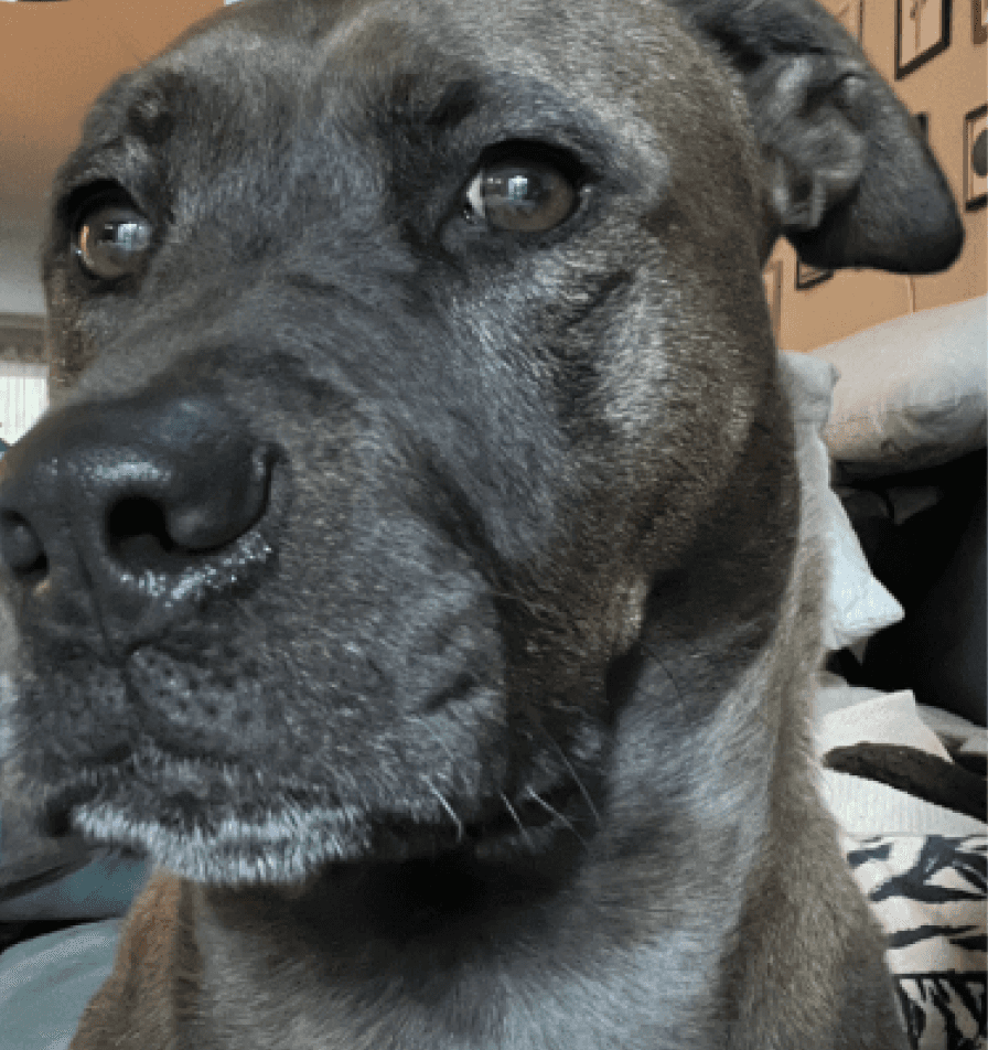 Thierry arrived at the ranch as a frightened puppy, abandoned at a shelter and unsure of the world around her. With time and care, she transformed into a calm, loving presence.