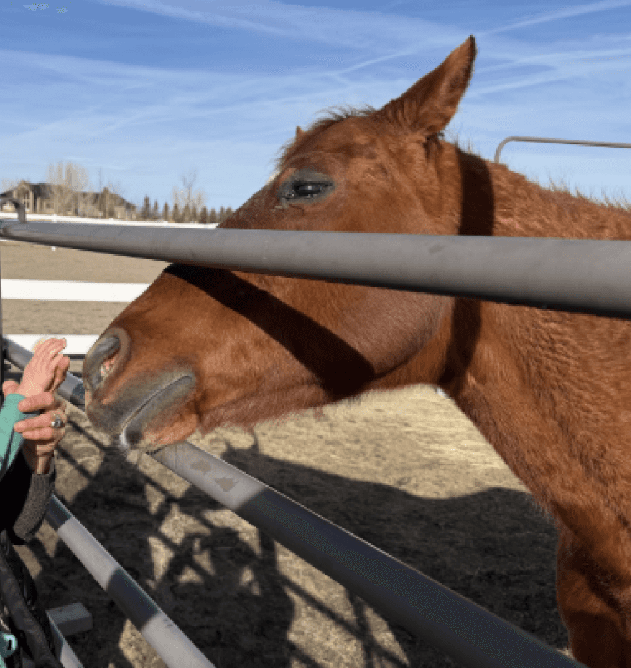 Canelo is a senior horse who arrived at the ranch after years of isolation and physical strain. Despite his past, he has an incredibly calm and reassuring presence.