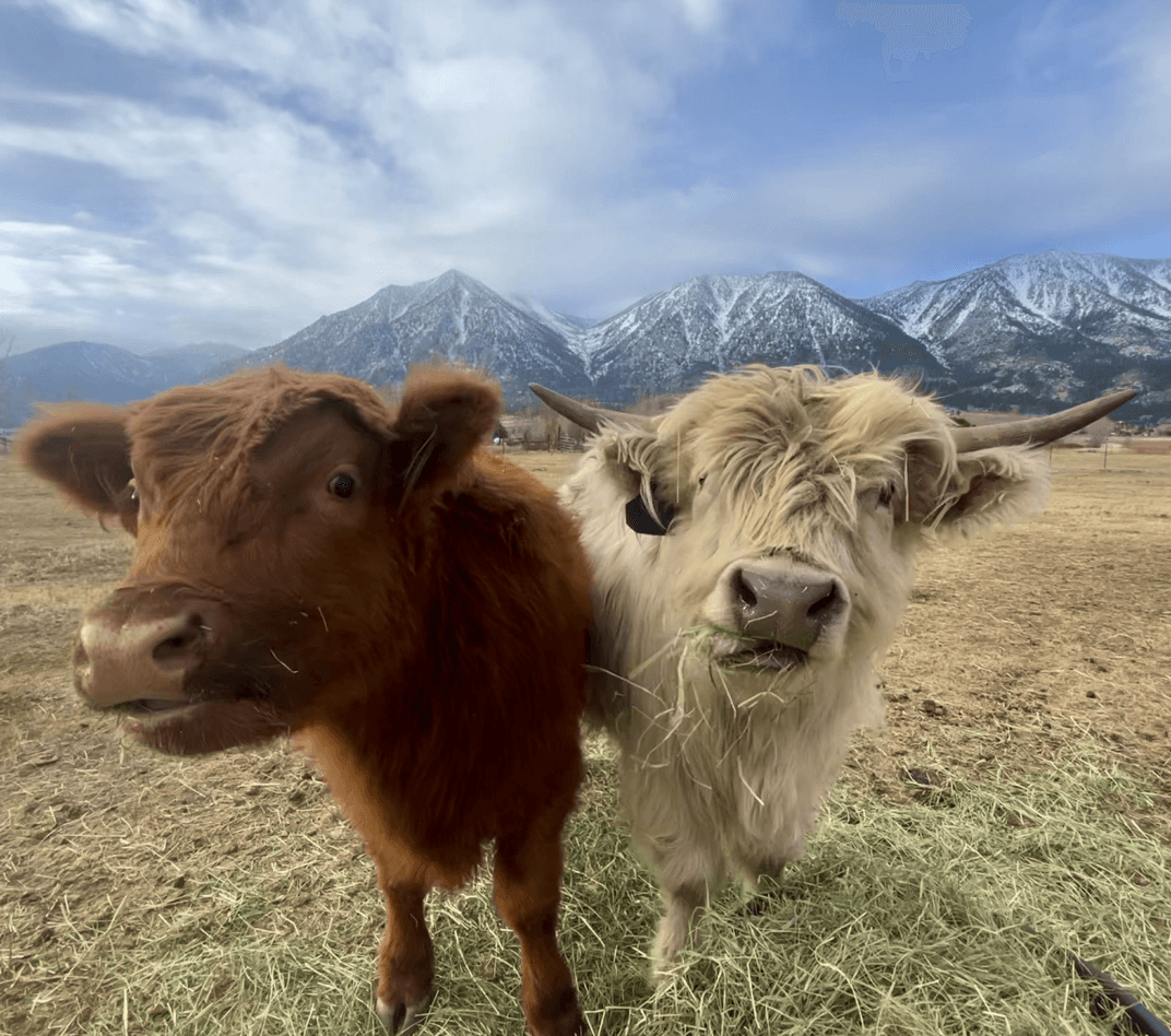 All 4 calves were born in the summer of 2025 and so they aren’t even a year old yet! And yes, they are all friends, not food.