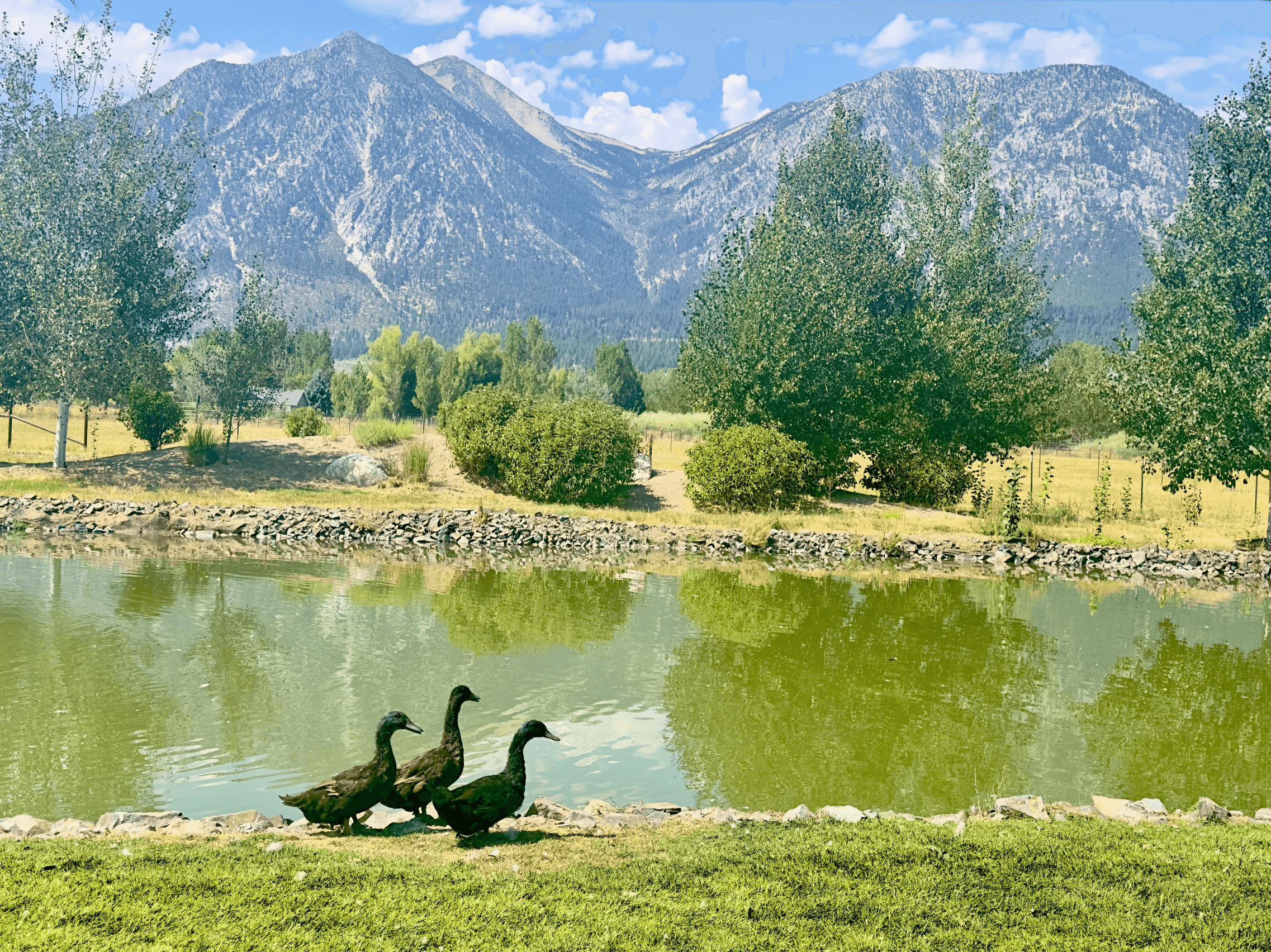 and around the pond. A particular favorite time of year for the fleet is irrigation day, when Trevor floods the tributaries around the ranch to water