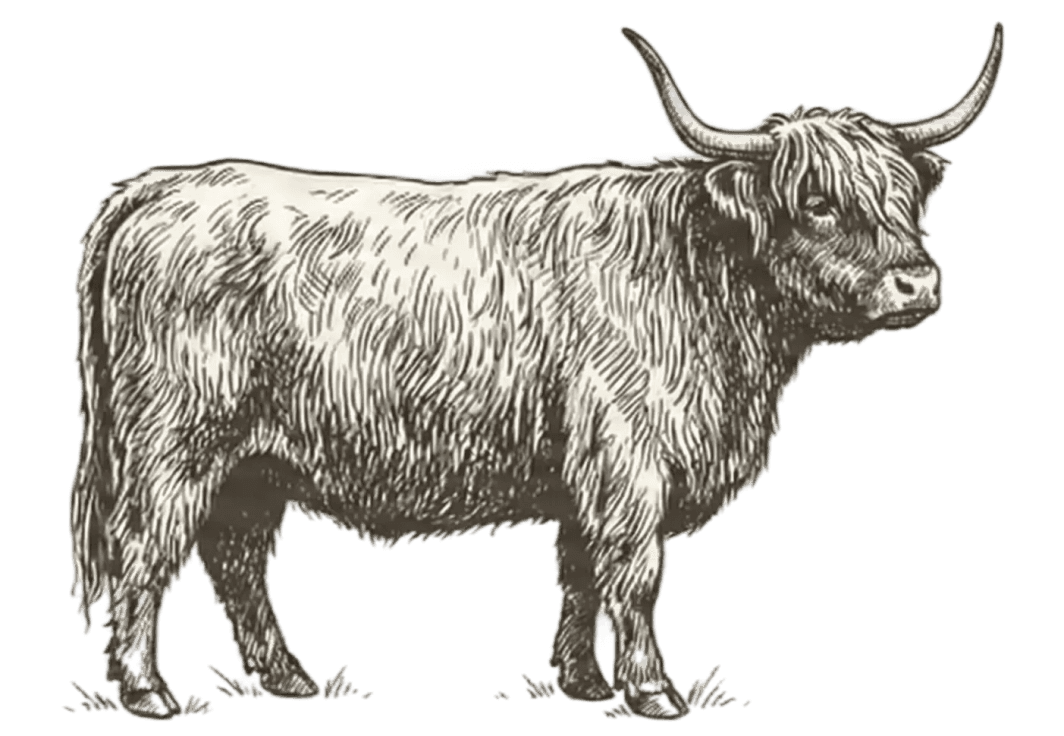 and dad was an Angus. Sadly, their momma died shortly after they were born and so they were orphaned. Orphaned or motherless calves are typically called ‘leppies’. Merryweather is full Angus and a leppy as well. Younger, the chocolate brown half Highland, is a steer (fixed male).