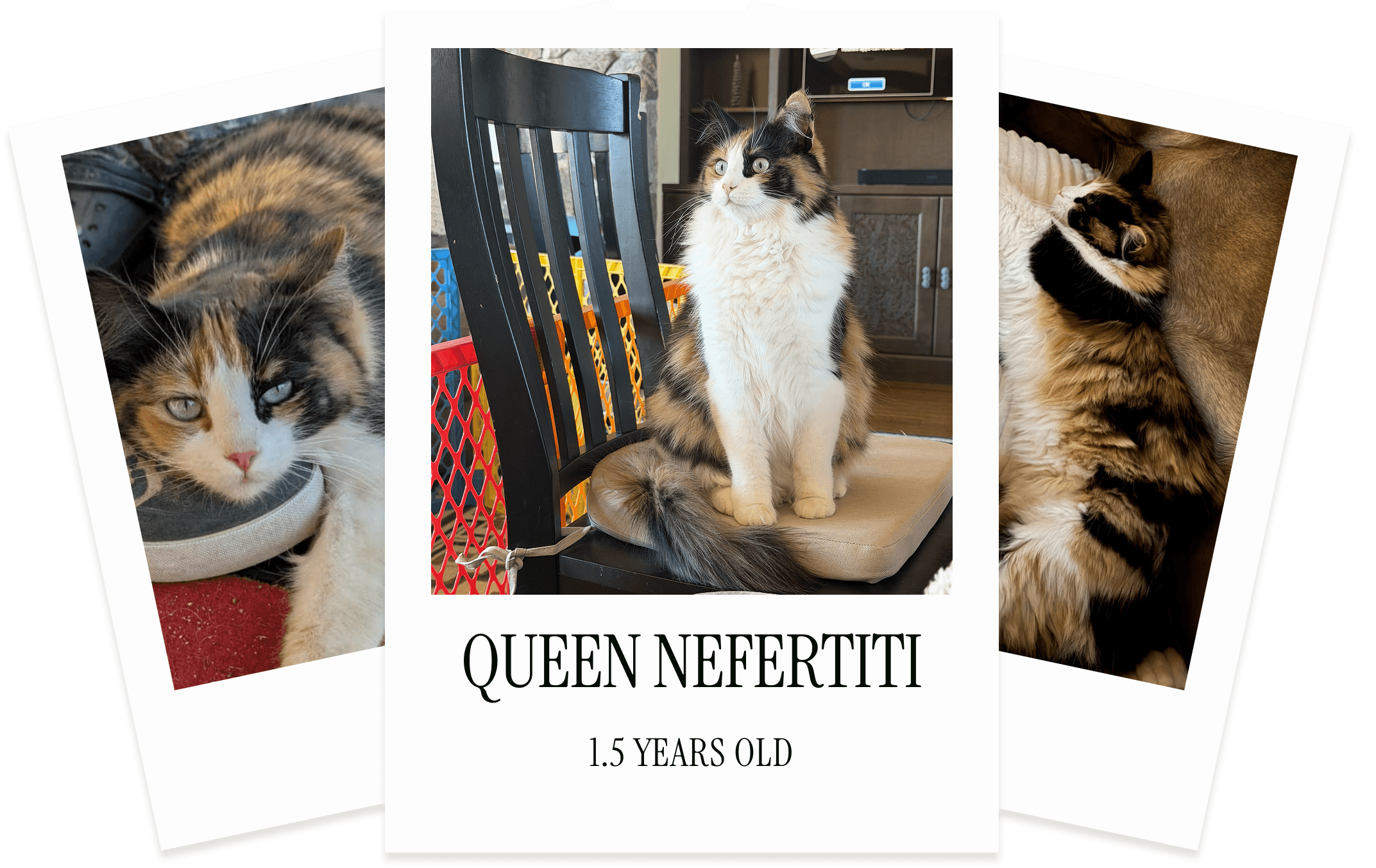 Nefertiti likes to eat anything and everything she can get her paws on; that includes duck food, pig food, and dog food. She prefers to patrol the ranch all hours of the day and make her way inside for lots of pets and snuggles (mainly with Grace)