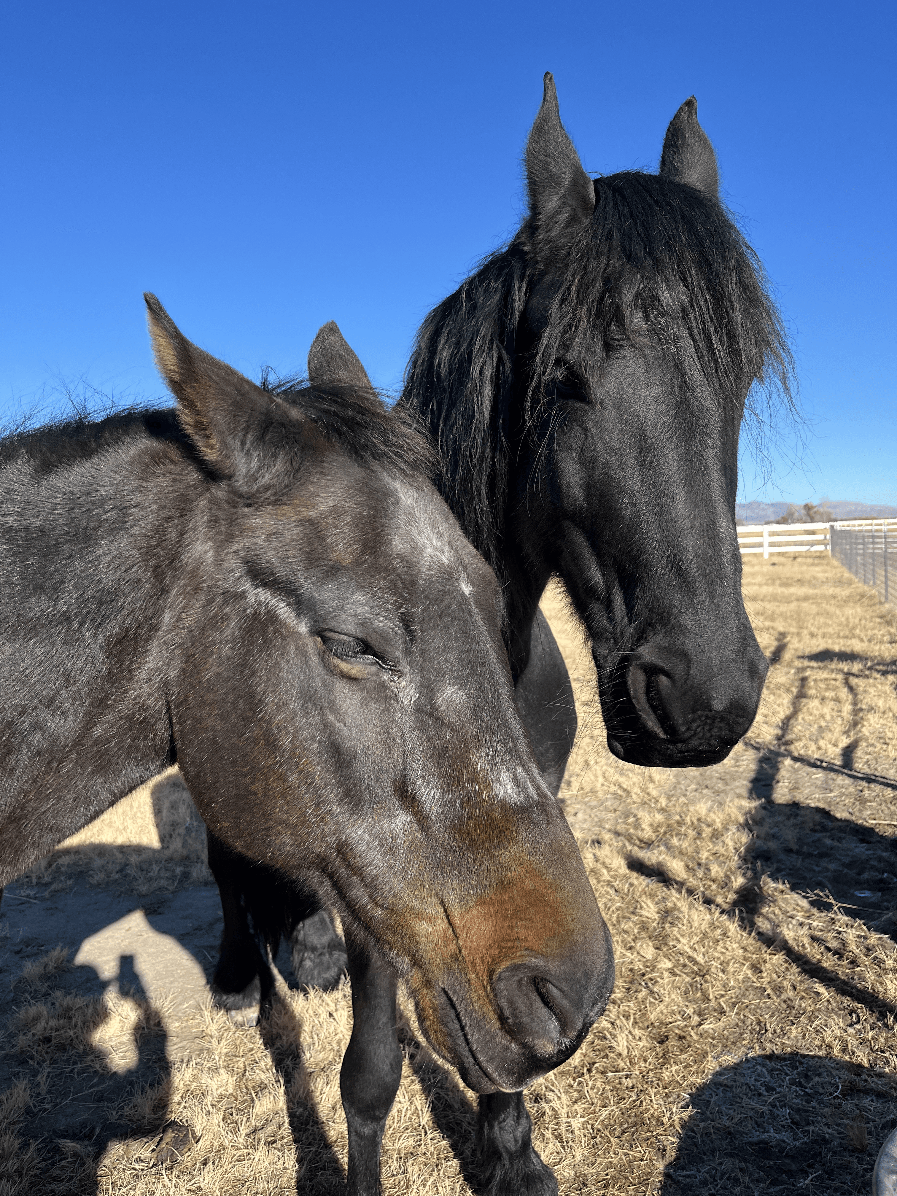 These boys are friendly indeed, although they mostly prefer to keep to themselves. They get along swimmingly with all other ranch animals, and they won’t be shy to approach you if you’re carrying any amount of hay. Frank is slightly more reserved while Jesse leaves it all out there for everyone to see.