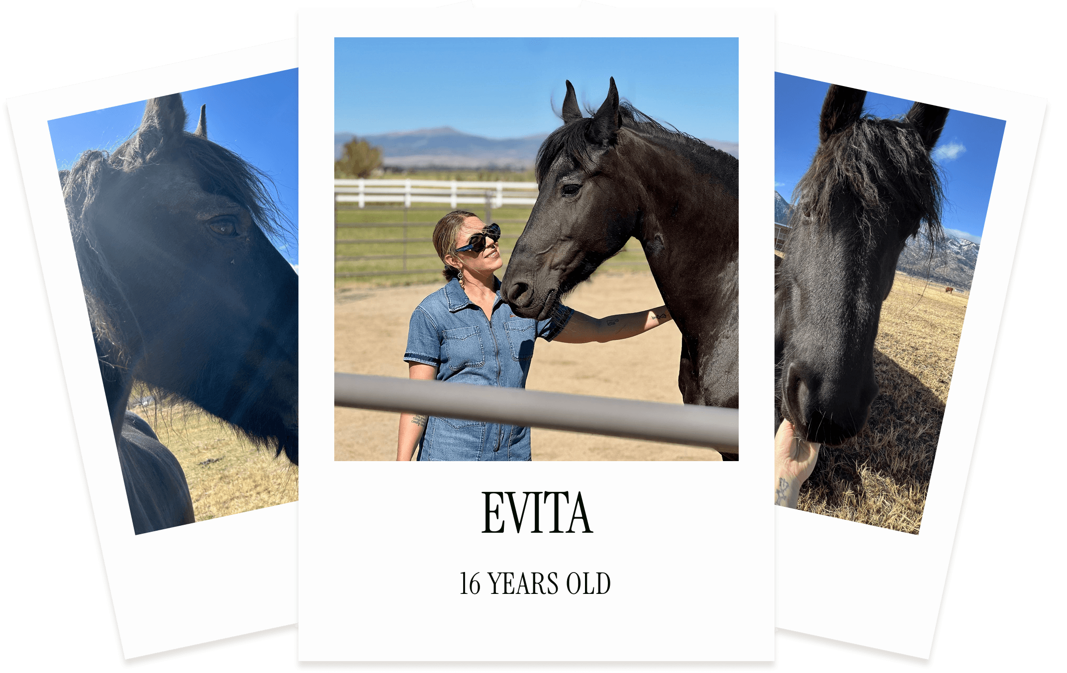 As a retired broodmare, Evita enjoys spending her time with her horse pals, eating carrots, and being ridden by Grace and others.