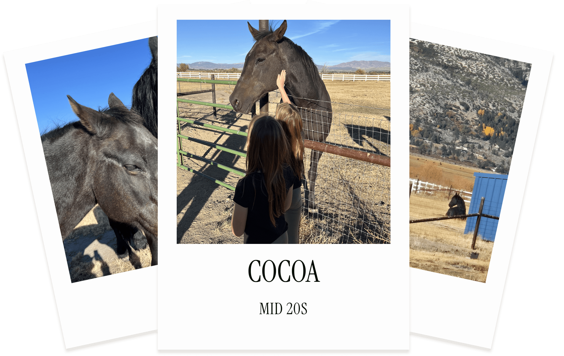 First thing’s first: Mister Cocoa is a huge lover. His previous owner had every intention for him to be her main riding horse until life had other plans. Cocoa ended up on his own in expansive desert-like terrain in Calaveras County, CA. Upon hearing about his lack of companionship (and hearty physique), Grace and Trevor took Cocoa in with open arms.