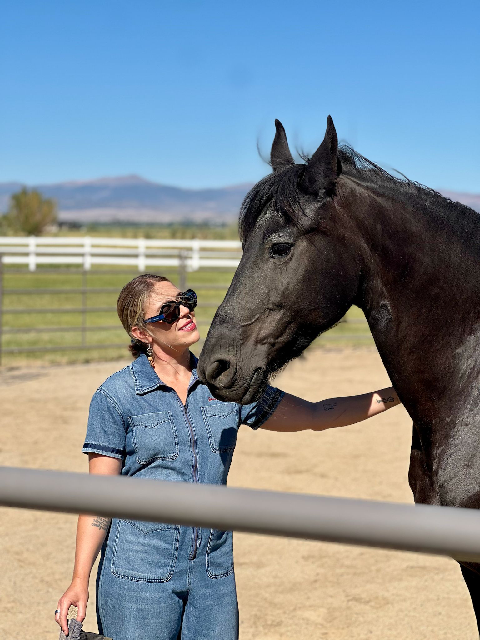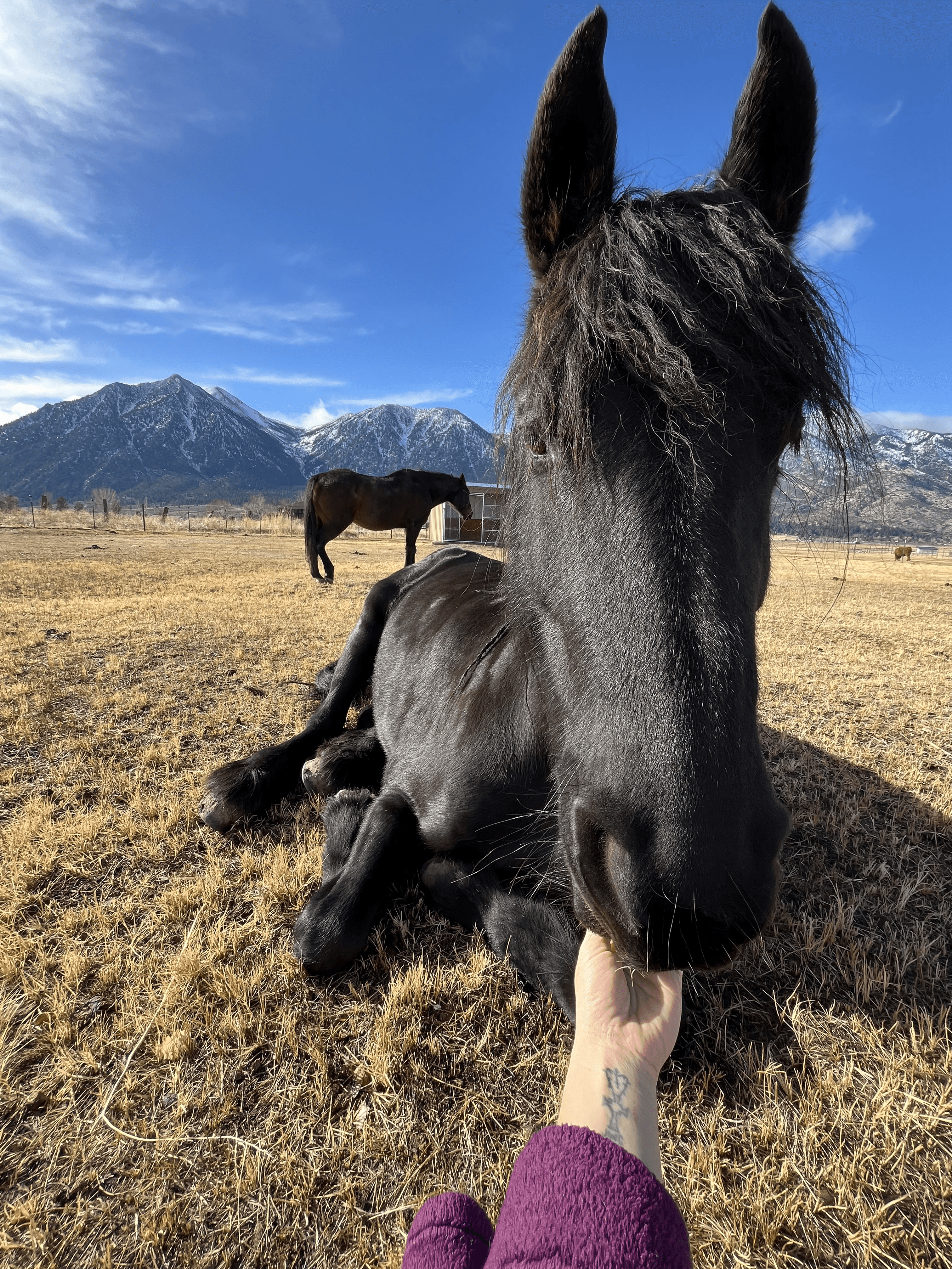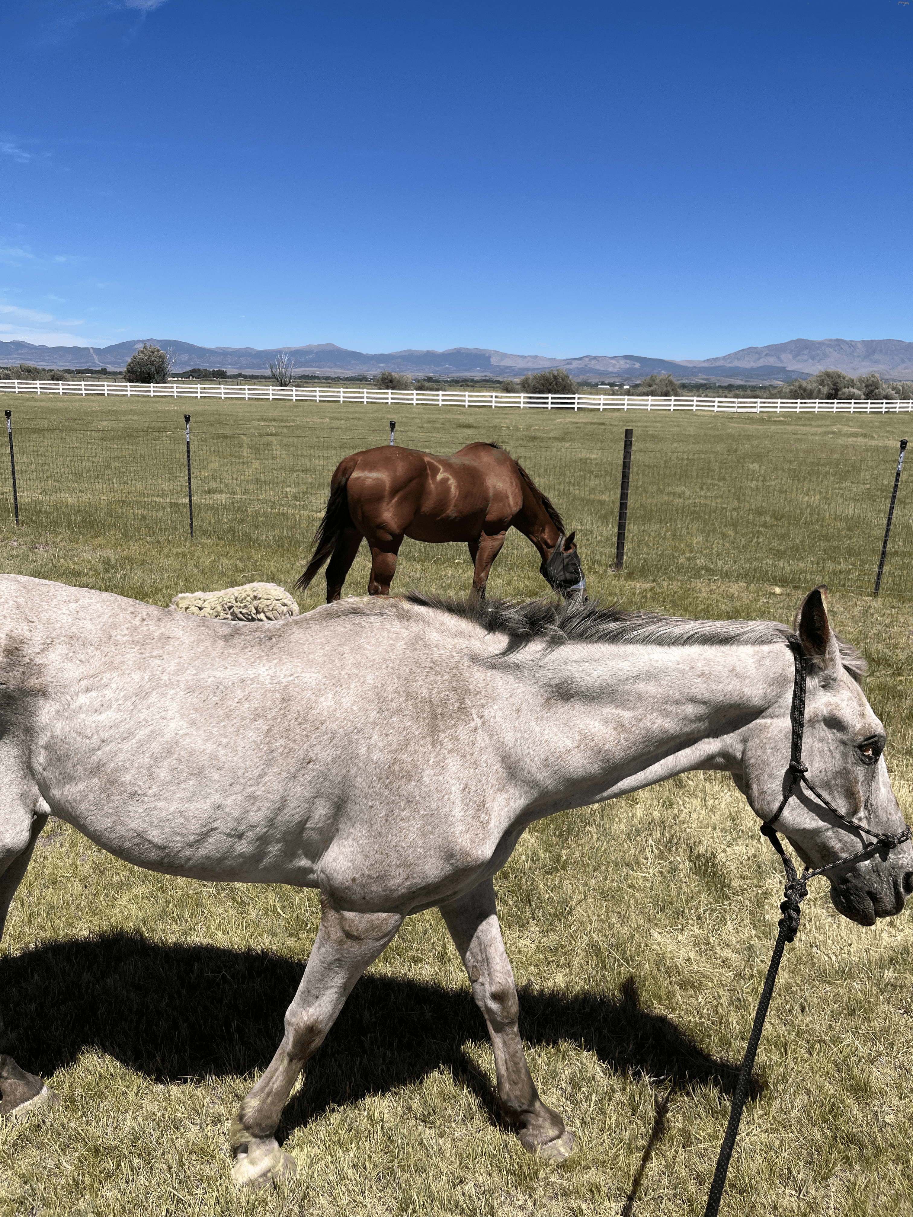 and 1 goat) and enjoys hopping around the pastures and hanging out with “her” horses.