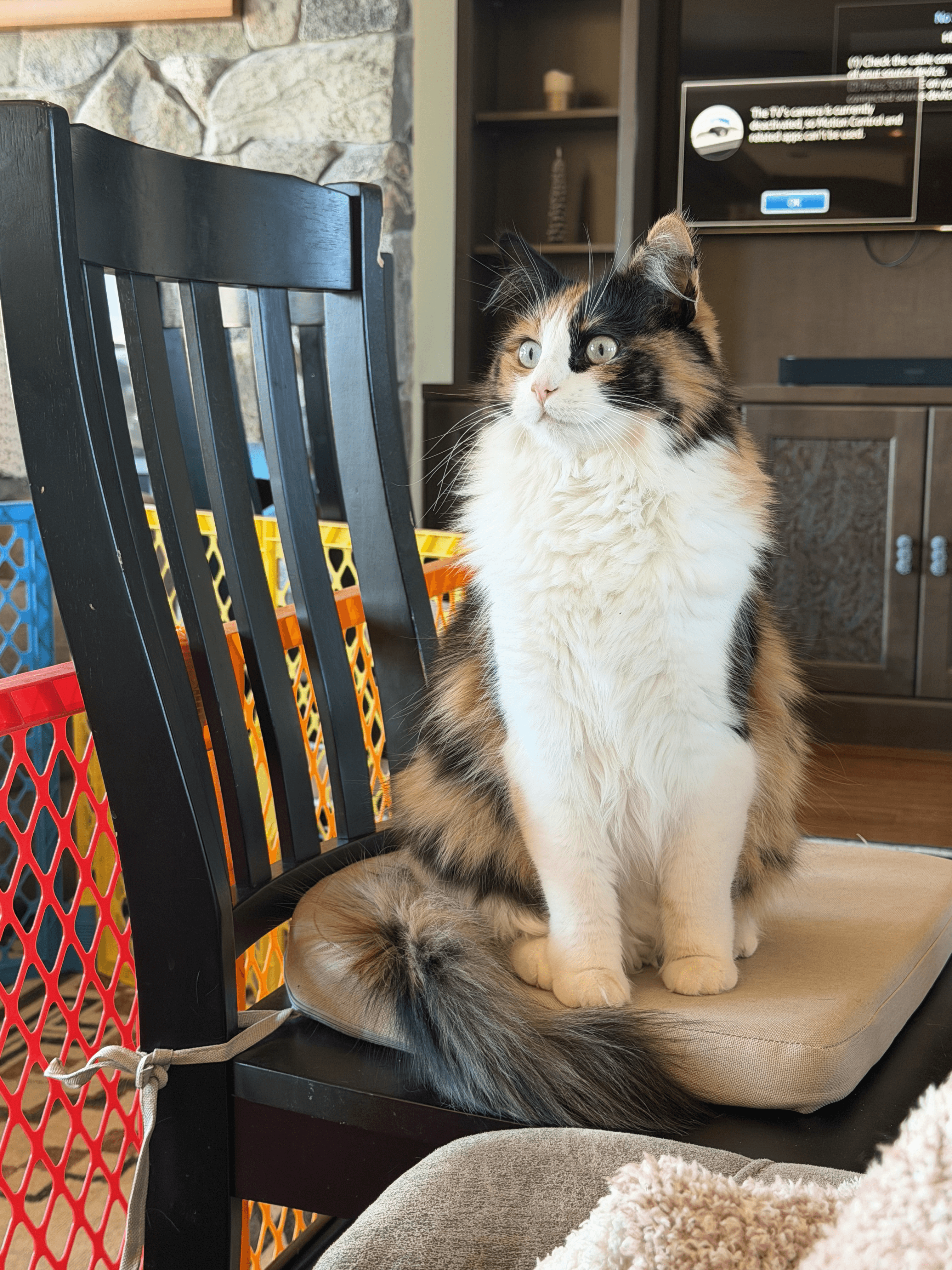 She lives quite the life and may go inside and outside as she pleases. Her favorite resting spot