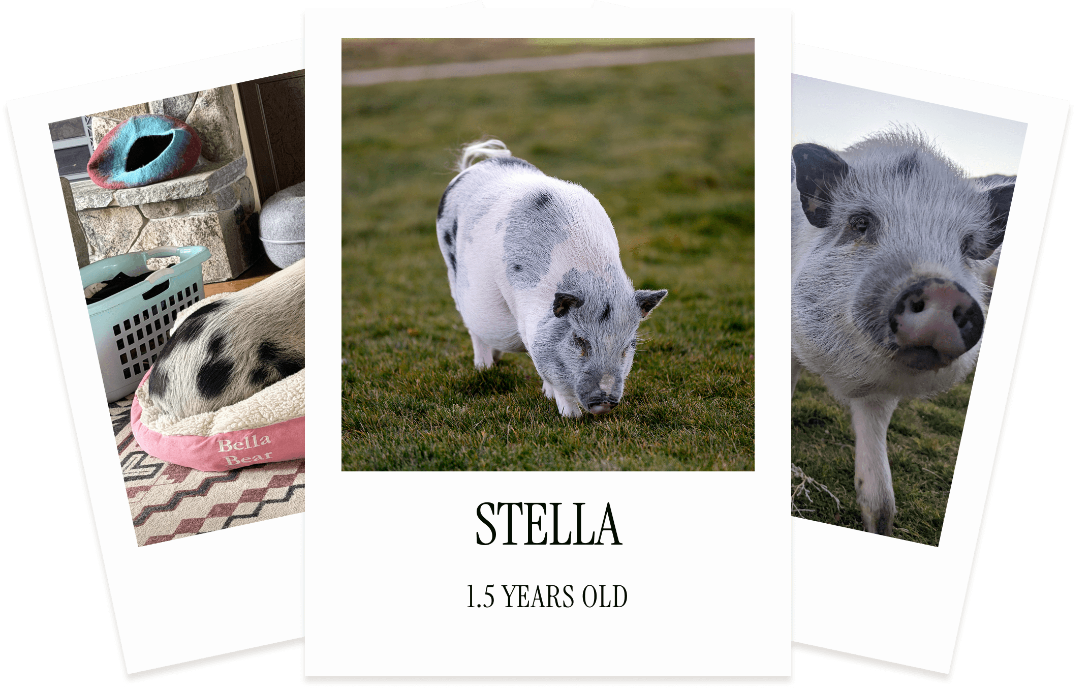 Grace picked up Stella from a small ranch in Fallon, NV at a very young 4 weeks old. As piglets typically don’t leave their mothers until 6-8 weeks, Grace