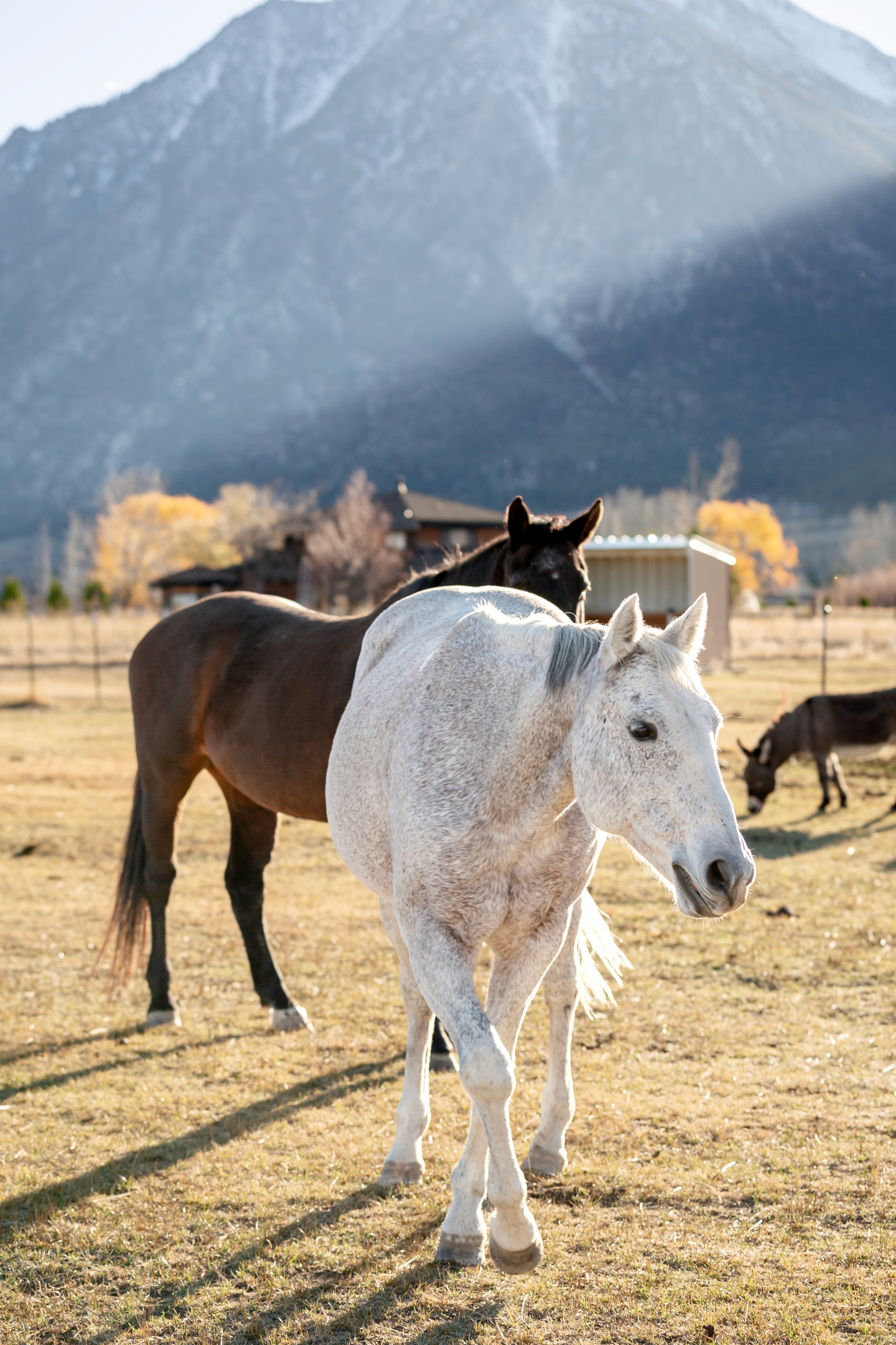 Grayson, ‘the old gray mare’, is a sweet and gentle soul. Previously trained in barrel racing and team roping, she is crystal clear on how to behave with