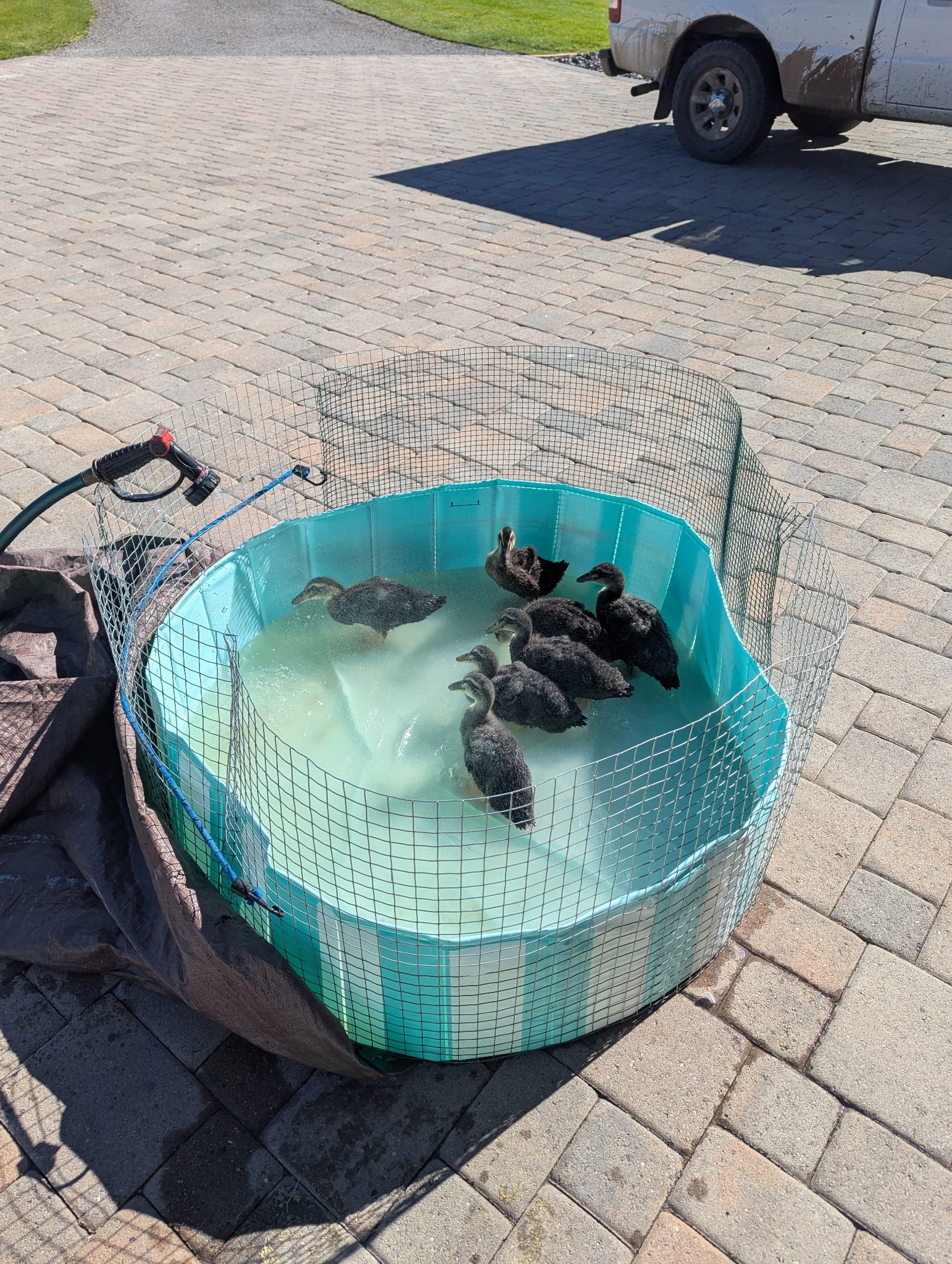 The duckies love eating dried worms and diced veggies. The females are especially quacky,