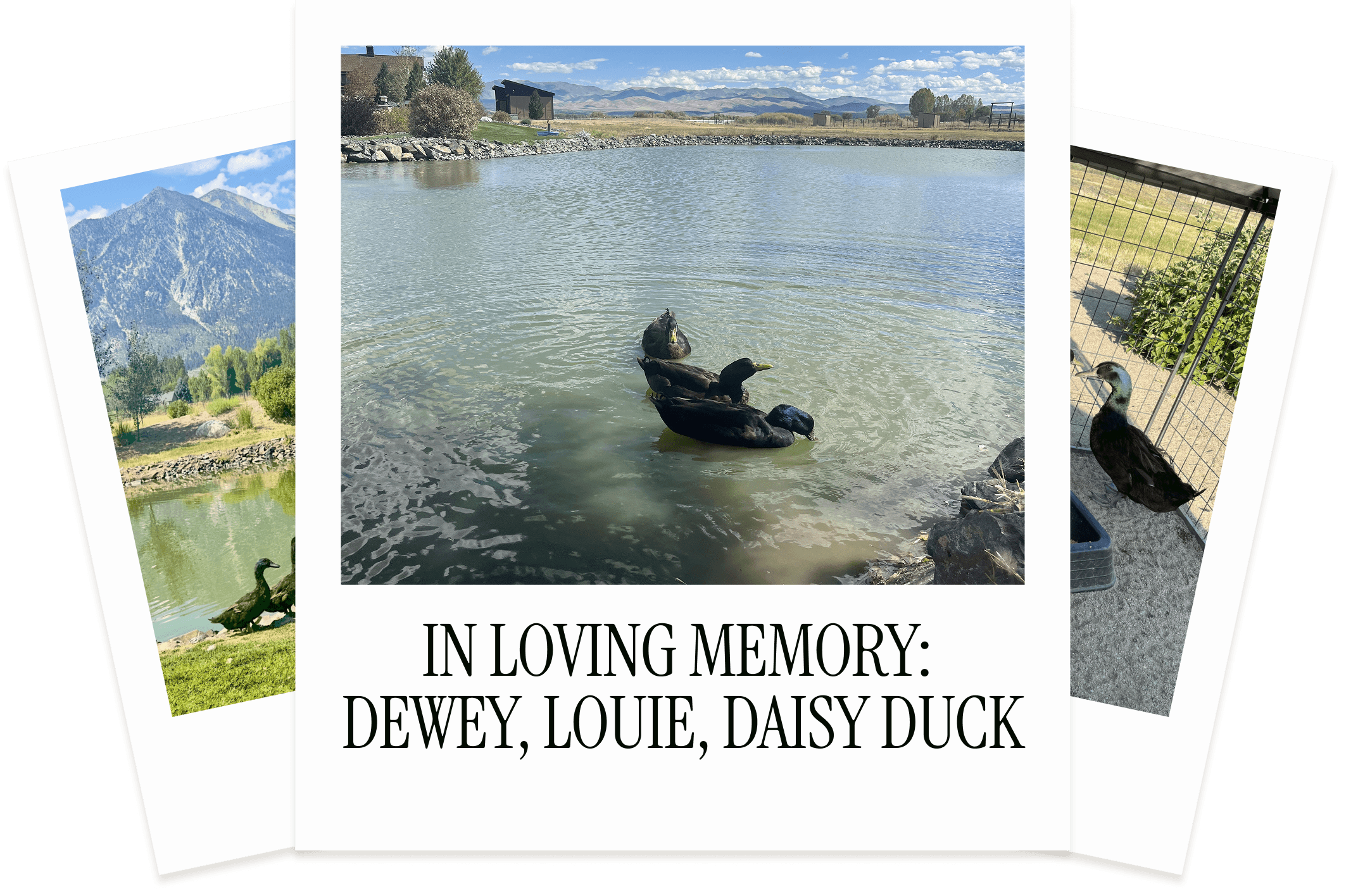 Our Cayuga duck, Huey, was rescued at the same time as Stella the pig. He originally arrived with 3 family members, which you will find on the “in loving memory” page.